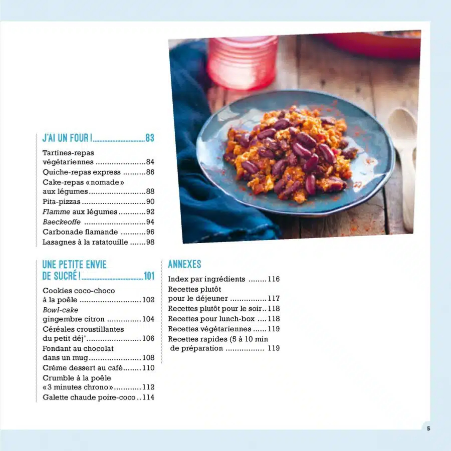 Blinis de tomates, mugcake aux olives, pilaf au poulet et pousses d’épinards, terrine de la mer, cookies à la poêle… des recettes simples à réaliser, avec peu d’ingrédients et faciles à emporter. En prime des conseils nutritionnels, quelques réflexions écologiques pour manger mieux en polluant moins.